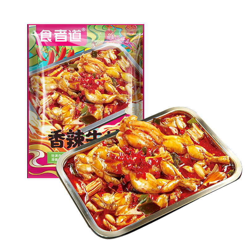 食者道香辣牛蛙香辣口味加热即食快手菜带蔬菜包冷冻跳跳蛙半成品,卖家食者道旗舰店,【双旦300-40凑单到手23】香辣牛蛙823g/含酱包+10元送烤盘,先烹口感,麻辣鲜香,4包配料,再也不用排队去外面吃了,解放小白双手【坏单包退】