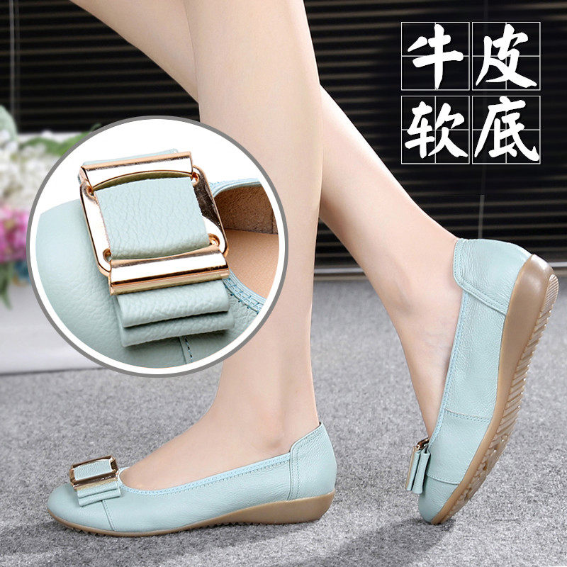 春季百搭平底单鞋妈妈鞋真皮软底女式皮鞋大码女鞋豆豆鞋女休闲鞋,卖家一直很安静云云真皮妈妈鞋,