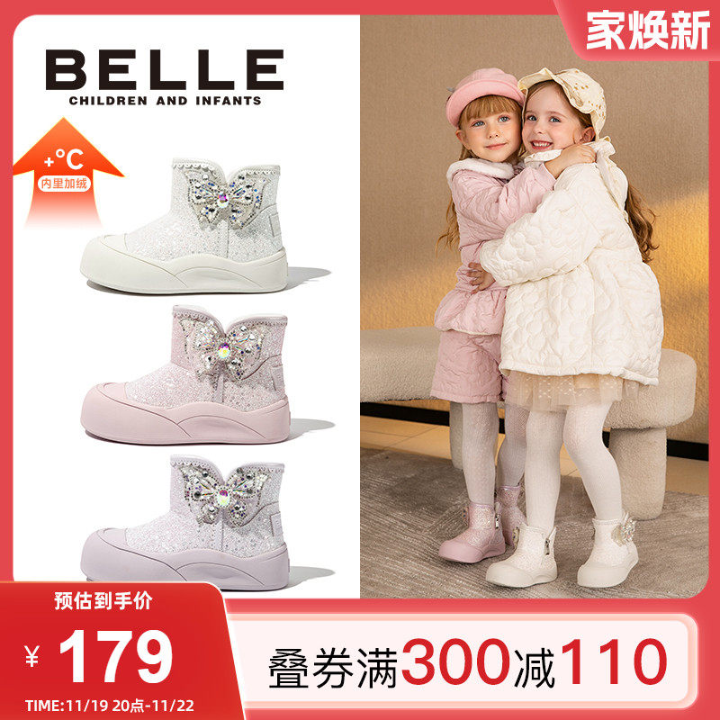 百丽童鞋女童公主雪地靴2024秋冬加绒棉靴小女孩加厚保暖儿童棉鞋,卖家百丽母婴旗舰店,【领60元优惠券,满1件立减100元,到手179元!】百丽仙境小蝴蝶公主靴,甜美优雅风,长毛绒柔软御寒,温暖呵护小脚丫,防踢圆鞋头,让女宝自在出街、火力过冬,2024秋冬必备公主靴!