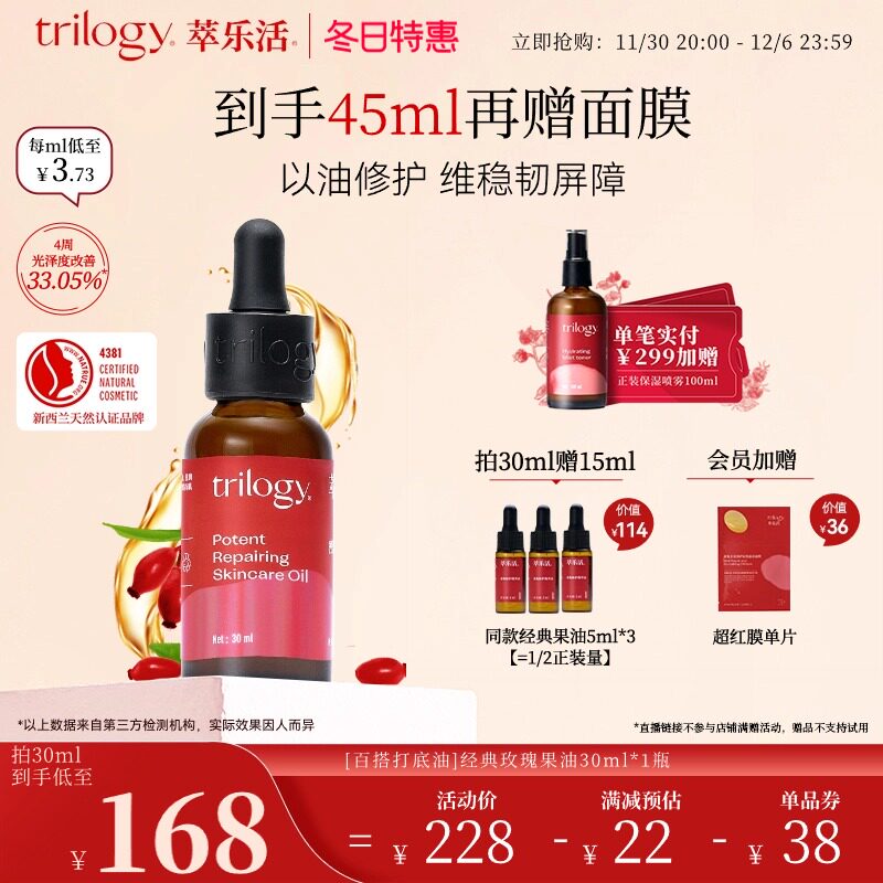 冬日特惠Trilogy/萃乐活经典玫瑰果油精华油 修护舒缓滋润,卖家Trilogy萃乐活化妆品旗舰店,