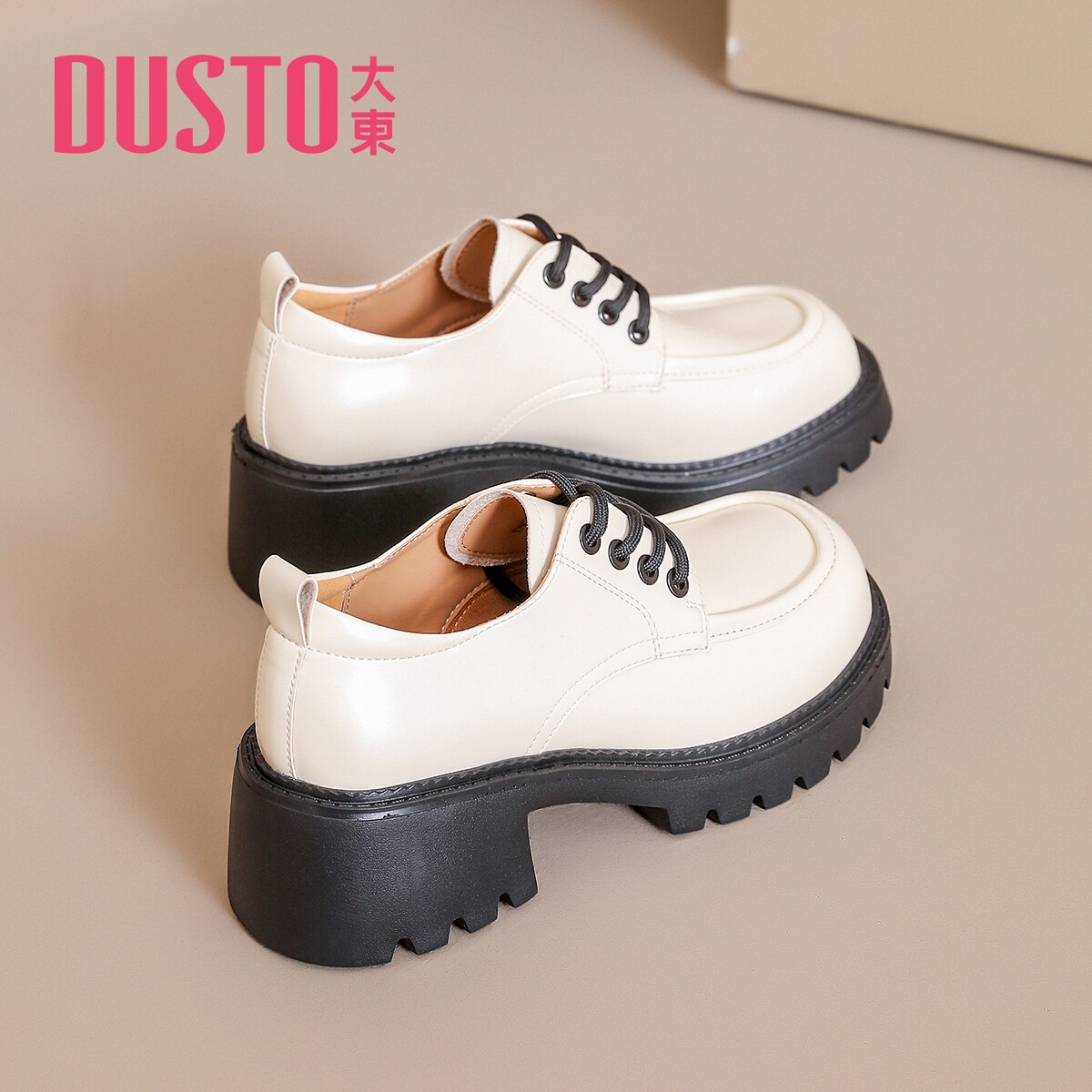 大东白色粗跟小皮鞋女2025新款春季厚底英伦乐福鞋深口单鞋牛津鞋,卖家DUSTO大东女鞋旗舰店,
