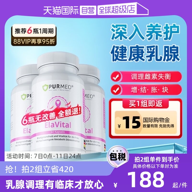 自营3瓶 帕米奥乳腺小粉瓶进口乳安素硒调理护胸乳房女生保健,卖家天猫国际自营全球超级店,