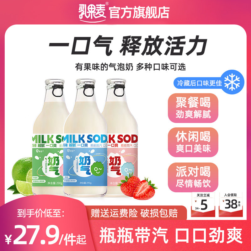 非合口味奶汽泡水柠檬草莓多种口味乳酸菌风味官方旗舰店网红饮品,卖家乳果麦食品旗舰店,【乳酸菌多种口味奶汽泡水】