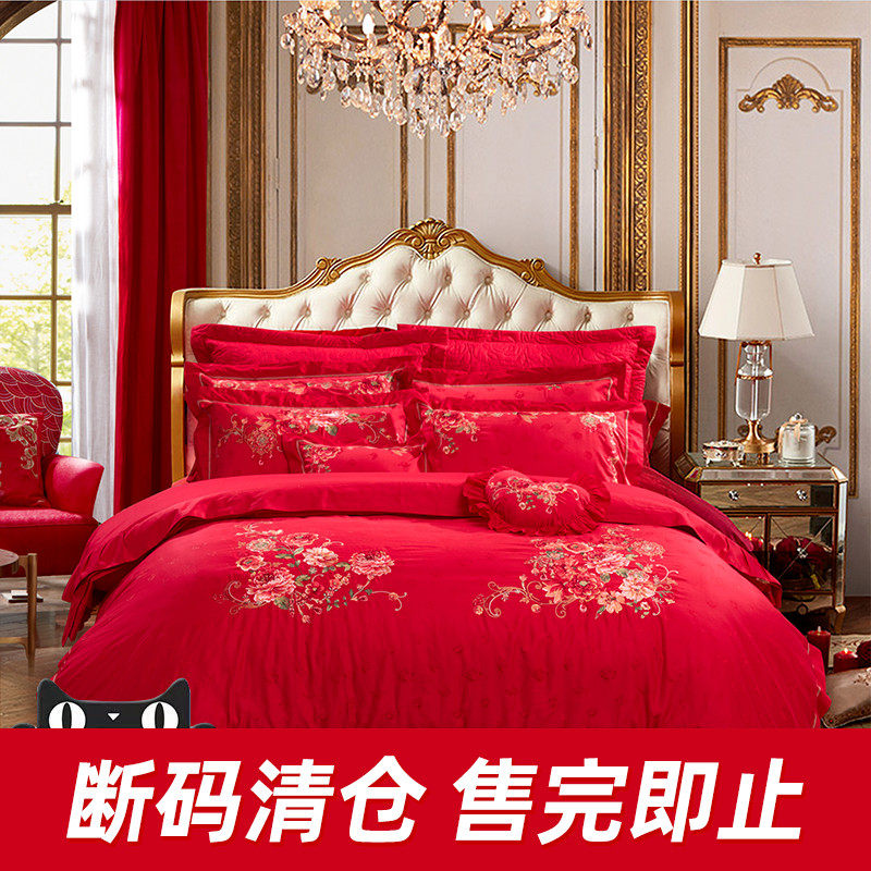 断码清富安娜家纺结婚婚庆纯棉床上用品大红婚嫁四件套多件套,卖家富安娜官方旗舰店,