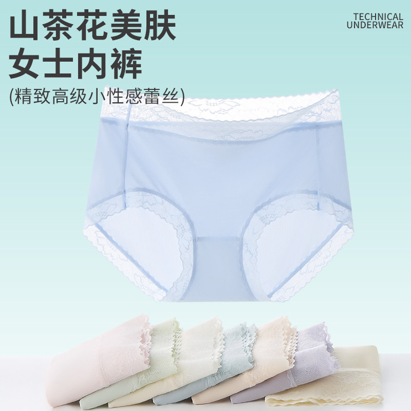 蕉轩7A抗菌山茶花无痕内裤女舒适透气中腰蕾丝性感大码三角裤新款,卖家蕉轩旗舰店,7A抑菌,吸湿排汗,超高弹力,硬核黑科技山茶花油面料,亲肤透气,无感爽肤!