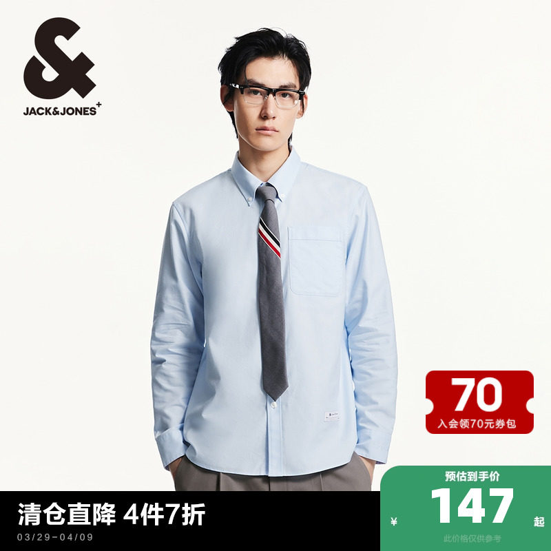 杰克琼斯秋季衬衫男士商务休闲长袖牛津纺白色衬衣服男生痞帅男装,卖家jackjones官方outlets店,
