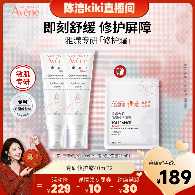 k姐年货节雅漾专研修护霜40ml敏肌高保湿舒缓乳液面霜褪泛红,卖家雅漾官方旗舰店,凑单到手仅184.65!加赠面膜!忠粉推荐口碑见证,敏肌入门优选,专研配方实力修护,温和0添加,强韧肌肤屏障,30秒快舒缓,褪泛红更佳,柔嫩保湿!【退货运费险