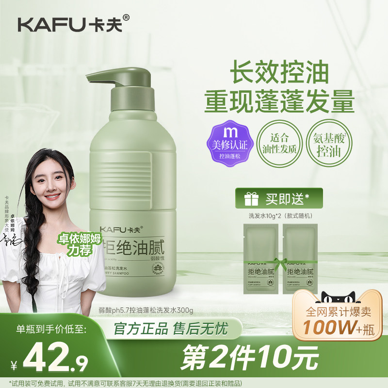 卡夫洗发水控油蓬松去屑止痒去油膏男女官方品牌正品旗舰店洗发露,卡夫品牌,卖家卡夫个人护理旗舰店,【凑单到手9】赠试用装2袋签到!弱酸洗发水,油,扁,塌头发救星!12小时持久蓬松,去屑止痒,控油清爽!改善毛躁,滋养健康秀发~