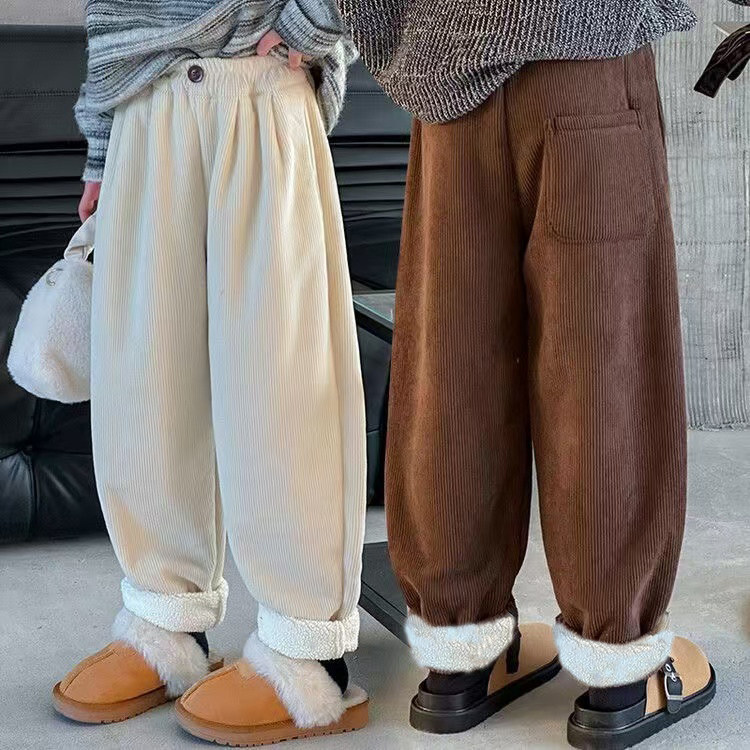 男童女童加绒冬季新款儿童一体绒休闲裤中大童加厚老爹裤510g左右,卖家口袋虎旗舰店,重510g左右!羊驼绒,保温效果更好!男童女童一个价