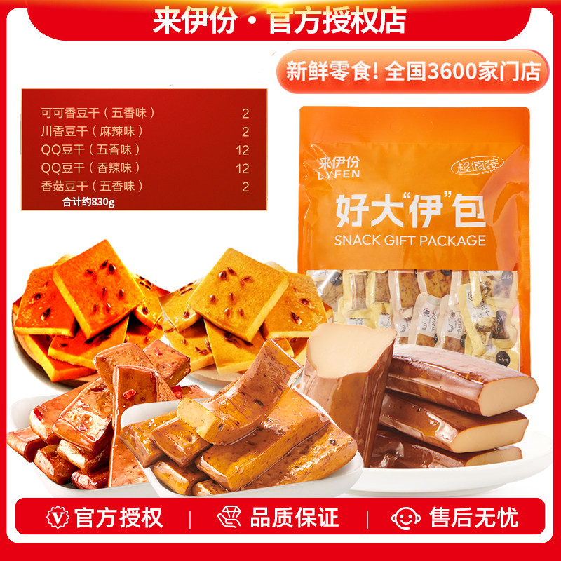 来伊份好大伊包豆干大礼包豆腐干休闲小零食休闲小吃零食大包组合,卖家权枫食品专营店,来伊份好大伊包豆干大礼包,Q弹劲道,鲜辣十足,口感细腻,豆香浓郁,越嚼越香!