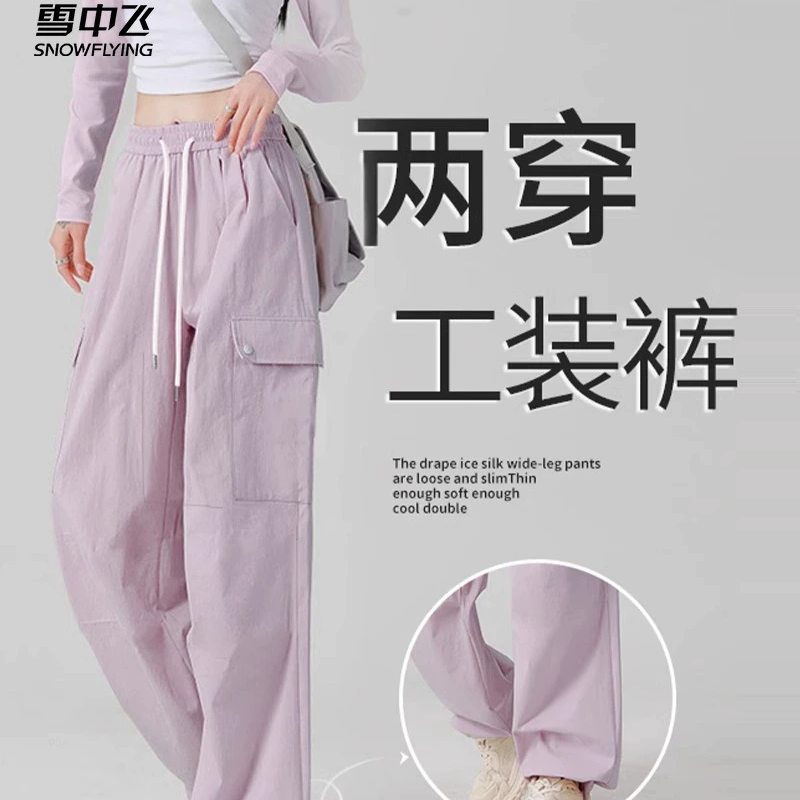 雪中飞工装裤女2025新款夏季薄款高腰休闲裤小个子紫色运动裤子PC,卖家雪中飞官方旗舰店,礼金补贴23.7元!雪中飞大牌工装裤的风潮又又又回来啦!!这叫冰丝工装裤,又酷又凉快~春夏就应该穿这种!胯宽腿粗都可以遮住!!倍儿帅气!