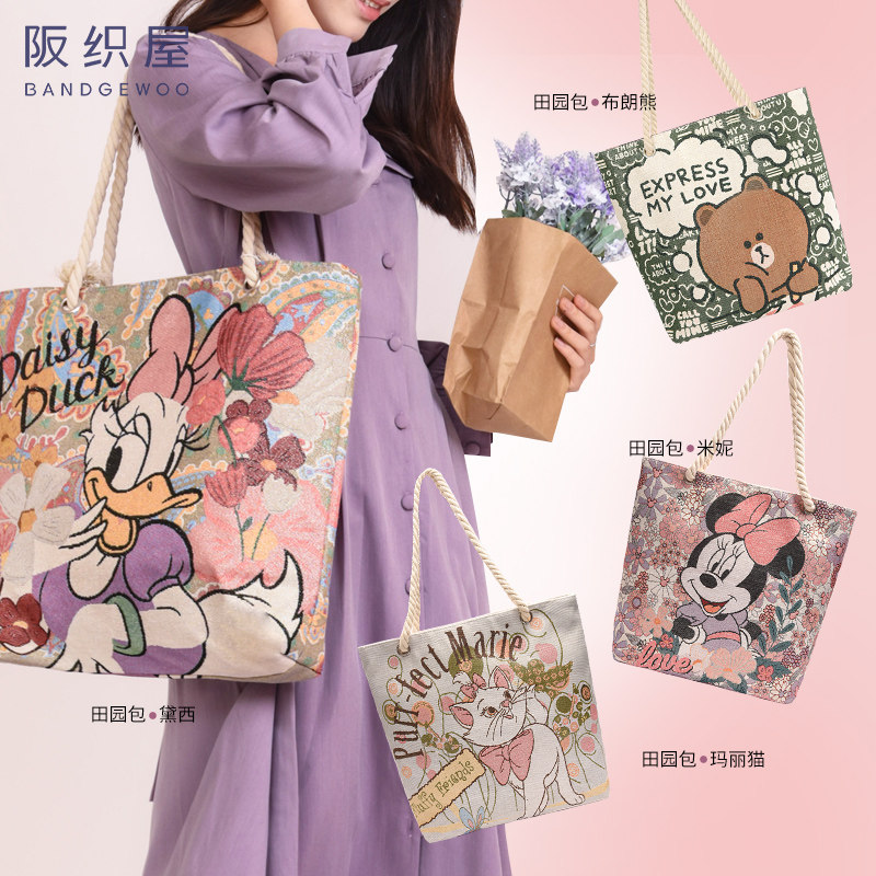 联名系列迪士尼托特包包女士女生刺绣麻绳田园拉链包托特AAA,卖家阪织屋outlets店,阪织屋秋季女士复古田园包手提包!多种款式任选!上班通勤!日常出街!超市购物!容量充足!!解锁冬日潮流,让你可甜可酷无惧标准和规则,不被标签定义~