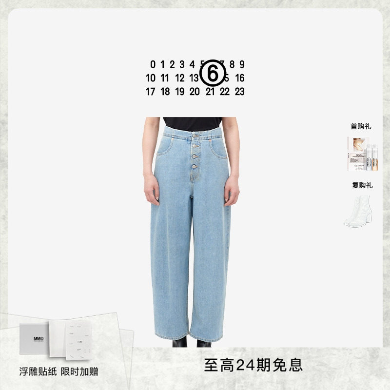 MM6排扣直筒阔腿休闲长裤牛仔裤纯棉女裤子女装,卖家Maison Margiela官方旗舰店,【MM6直筒阔腿牛仔裤】