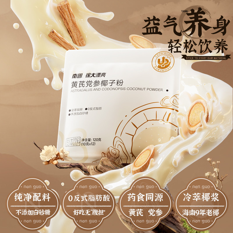 【商品原价36.9,超市立减5,领券再减3,到手仅需28.9,下单返猫卡2元,实际到手仅需26.9】南国黄芪党参椰子粉10g*12条,超赞~