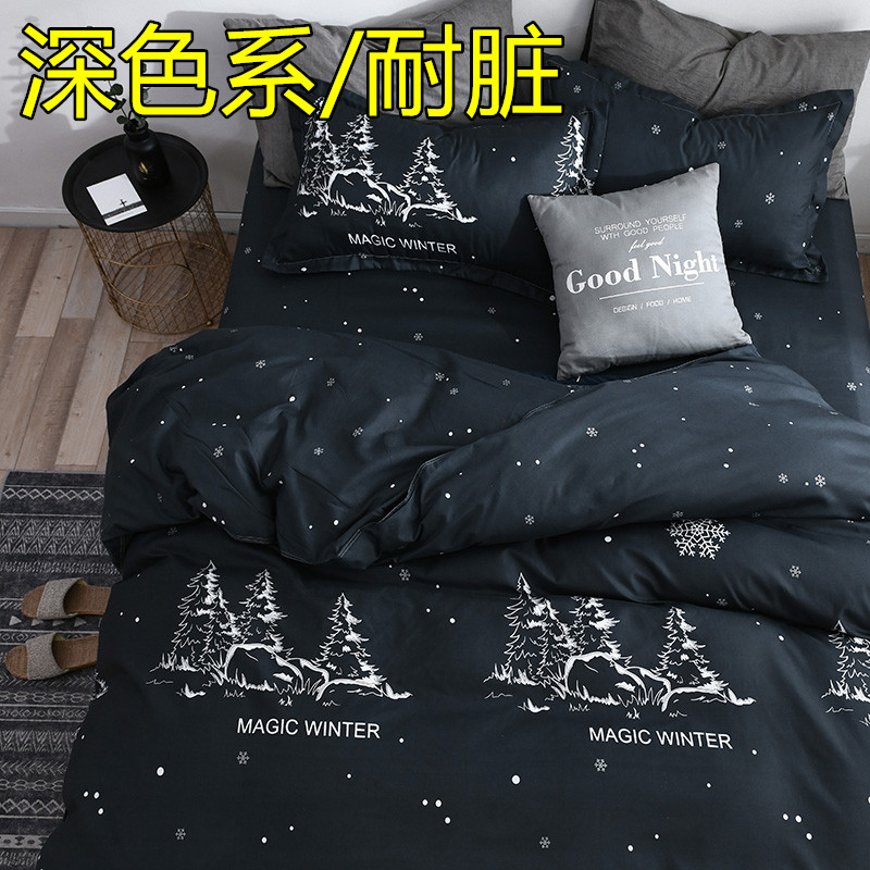 男生宿舍四件套ins风黑色被罩床上用品学生单人被套床单三件套34,卖家南私家纺旗舰店,