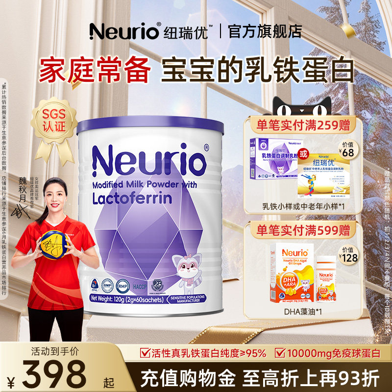 双11狂欢纽瑞优旗舰乳铁蛋白120g儿童成长官方正品免疫球蛋白,NEURIO/纽瑞优品牌,卖家neurio纽瑞优旗舰店,【全.网蕞.低价】【拍2罐规格领143券到手592/2罐,合296元1罐,拍其他规格领其他大券到手更划算,用消费券+签到到手更低】【拍1赠白金强化版小样1(价值68)拍2赠同款白金强化版正装1(价值360)】七重黄金营养搭配,全面发育促吸收!安全0添加,宝宝吃的放心~