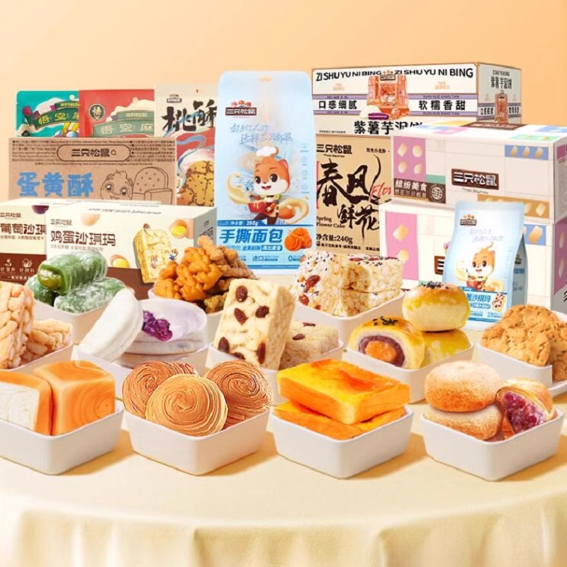 【三只松鼠_面包糕点点心组合】零食面包早餐糕点吐司,吃好早餐,没那么难