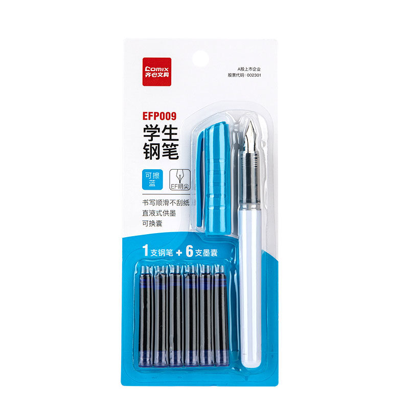齐心可擦钢笔小学生专用热敏可擦墨囊可替换儿童练字钢笔初学者顺滑练字书写复写可擦学生钢笔蓝色,卖家comix齐心办公用品旗舰店,齐心童趣儿童可替换送6只墨囊,EF笔尖钛金笔钢笔,可擦可送礼,防脱色图案,短杆设计,童趣十足,矫正握姿,引导正确的握笔姿势.