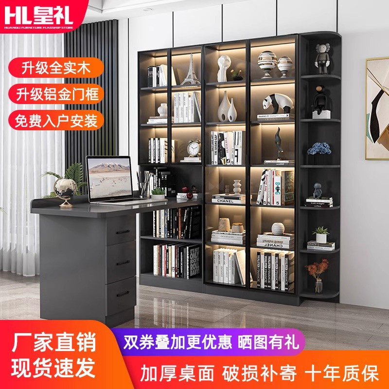 轻奢实木转角书桌书架一体整墙书柜儿童学习写字台办公拐角电脑桌,卖家皇礼家具旗舰店,
