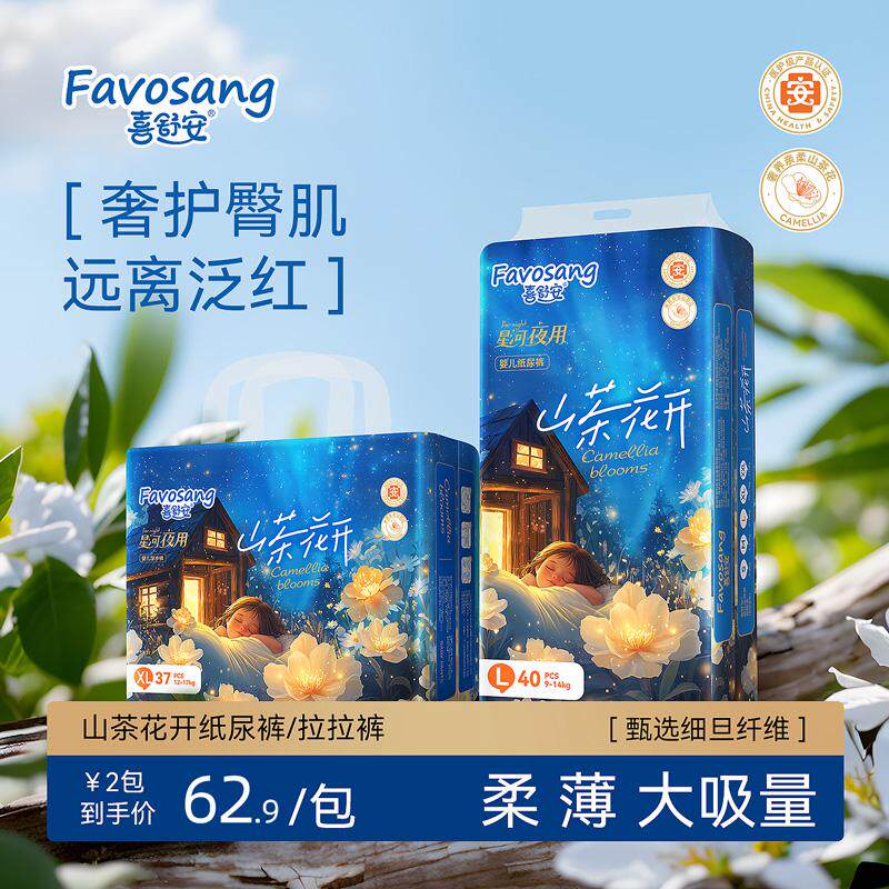奢养亲柔山茶花,奢护宝宝臀肌,远离泛红,裸感花边腰,无束无勒也无痕,星河夜用,安睡专研大吸量。