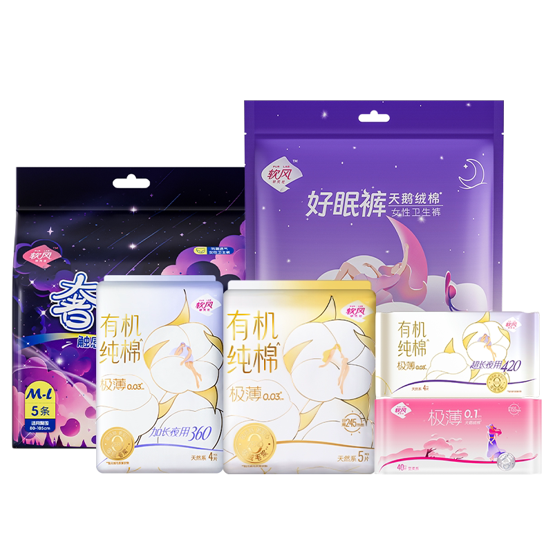 任选9件!券后才29.9元!!软风研究社卫生巾日夜用安睡裤组合,赶紧囤货,速度了,真的手慢无!选择困难症这个就足够!超薄不闷快囤!!