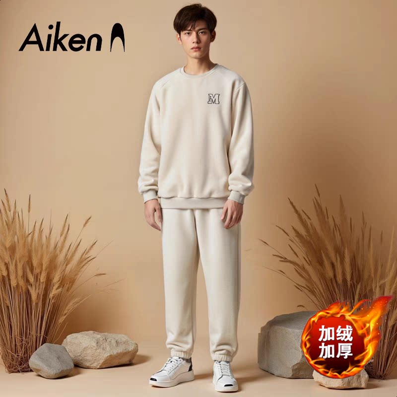森马集团Aiken冬季摇粒绒套装双面绒家居服情侣长袖长裤潮两件套,卖家淘宝内购会,甄选面料,亲肤舒适面料看得见的柔软,松紧腰围