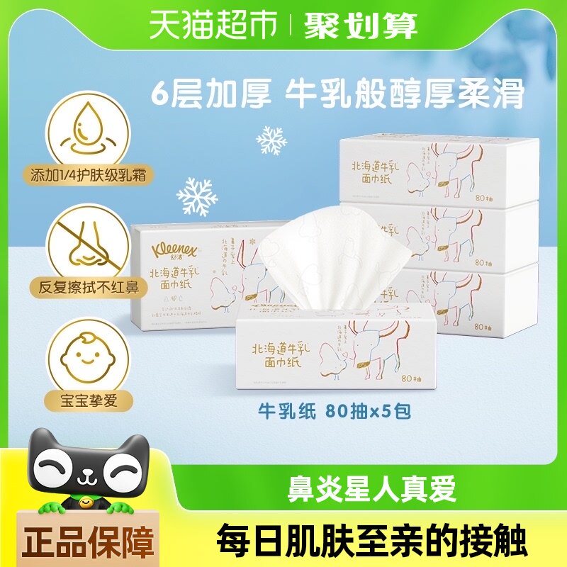 舒洁牛乳系列乳霜纸80抽*5包加厚6层保湿云柔巾鼻子纸,卖家天猫超市,【下单立减8元,88vip到手更低】汲取牛奶护肤灵感,我们重新定义纸巾,让每一次擦拭,都是温柔的呵护,肌肤更爱的大自然成分让每次擦拭都无比安心。