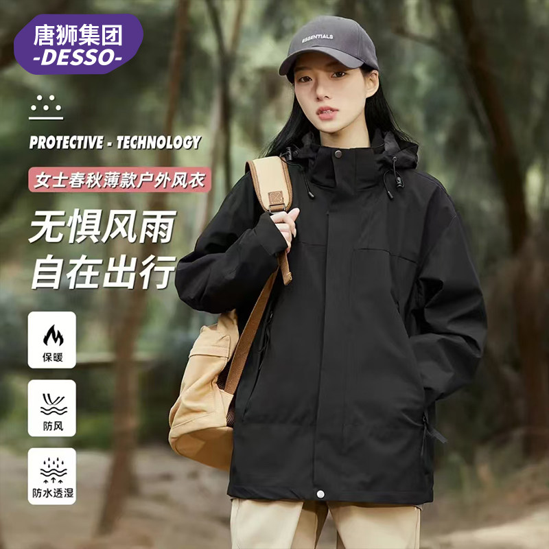 唐狮集团DESSO春秋冬薄款户外冲锋上衣女防风防水可拆卸帽子夹克,卖家淘宝内购会,限量!!!前3个款式34.9元!最贵也只要39.9元!高品质已验货!唐狮线下同款冲锋衣,突降20元!线下一件300+、都是经典好看的款,闭眼买都不会踩雷!三防面料,防风,防水,防污!!