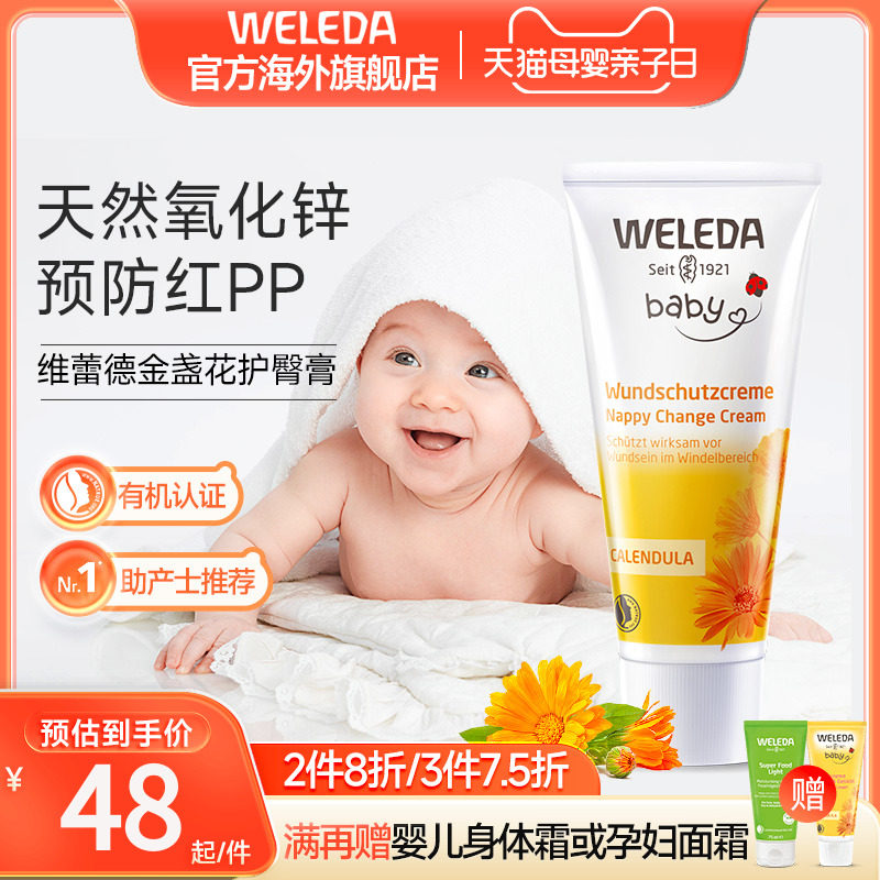 weleda维蕾德护臀膏新生婴儿红屁股屁屁霜金盏花护臀霜婴儿疹湿痒,维蕾德品牌,卖家weleda官方海外旗舰店,【可签到,拍2件】天然有机护臀膏,品质传承40载,专业呵护全球千万娇嫩屁屁。有机天然金盏花护臀膏,舒缓红屁屁,有机植物萃取精华,低敏性,嫩肌适用,无任何化学成分。