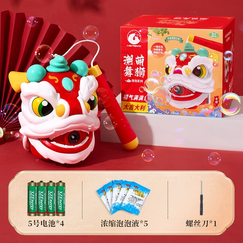 舞狮电动泡泡机,国潮新风尚,欢乐的年味气息,搭配传统吉祥装饰物点亮美好愿景,小朋友超级喜欢,赶紧抢!!!