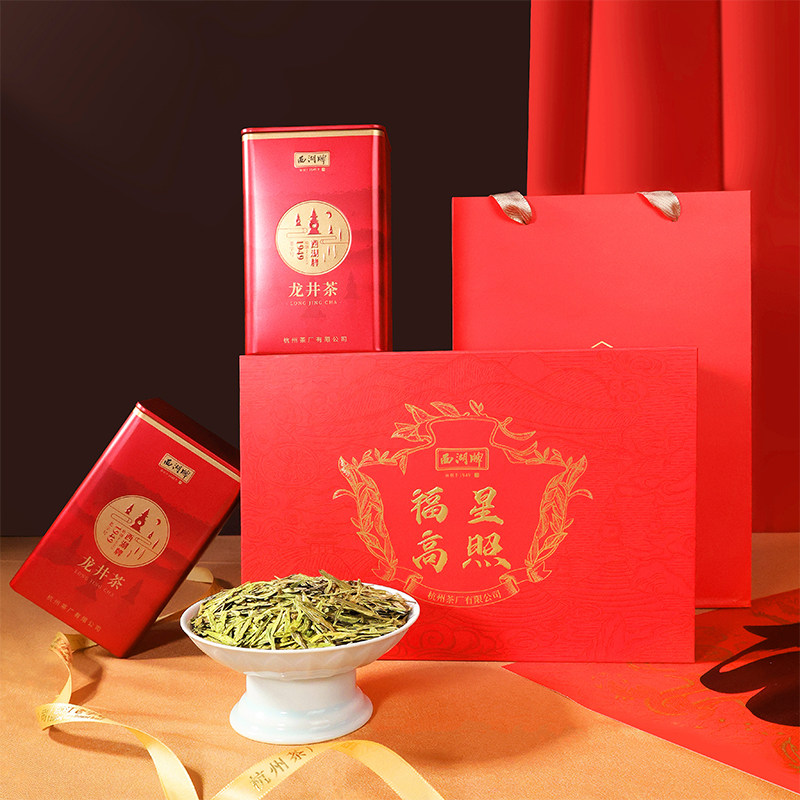 西湖牌!雨前浓香龙井茶红色礼盒装