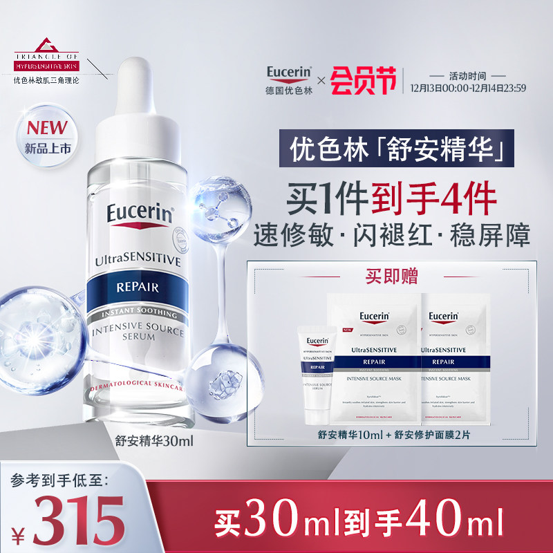 EUCERIN/优色林舒安精华舒缓泛红修护肌肤屏障敏感肌馨肤怡30ml装,卖家优色林旗舰店,【赠舒安精华10ml*3】抑敏源,闪褪红,深修护,高能修护,三管齐下全通路修复。专为敏感肌肤设计的精华液,采用温和配方,不含香精、色素等刺激成分,有效缓解肌肤敏感问题。【赠退货宝】