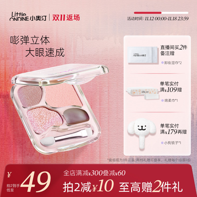 [双11狂欢开抢]小奥汀爱豆四色卧蚕盘提亮珠光下至眼线眼影综合盘,小奥汀品牌,卖家小奥汀旗舰店,【券后到手价54满300-50元凑单到手44.17】小奥汀爱豆四色卧蚕粉盘提亮眼线眼影综合盘,嫩妹天菜!一盘封神了!又温柔又嘭!速成妈生纯欲大眼,小小一盘功能大大!集齐了四色,日常又百搭,让人一眼就心动!
