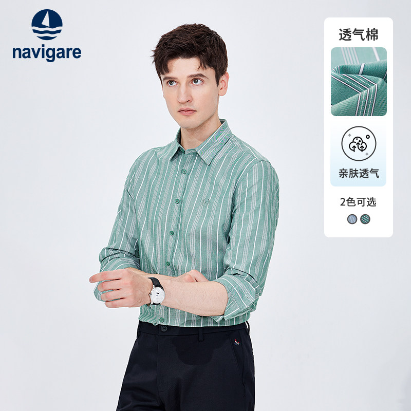 [冰丝]Navigare意大利小帆船商务条纹衬衫男长袖春季绿色打底衬衣,卖家navigare纳维凯尔outlet店,