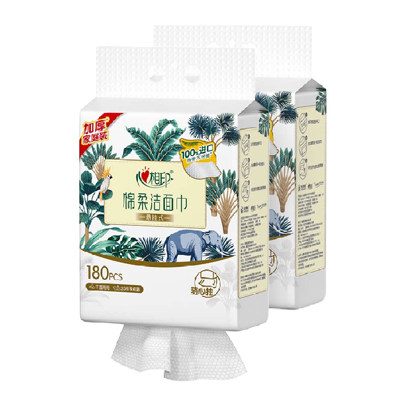 心相印一次性悬挂抽式洗脸巾加大加厚量贩棉柔擦脸洁面巾180抽2包,卖家天猫超市,【选2件的选项~】心相印一次性悬挂抽式洗脸巾180抽2包2件,看得见的厚实,一张就够~立体交织,水刺工艺~不含可迁移性荧光增白剂!魔力AB面,清洁护肤全搞定!