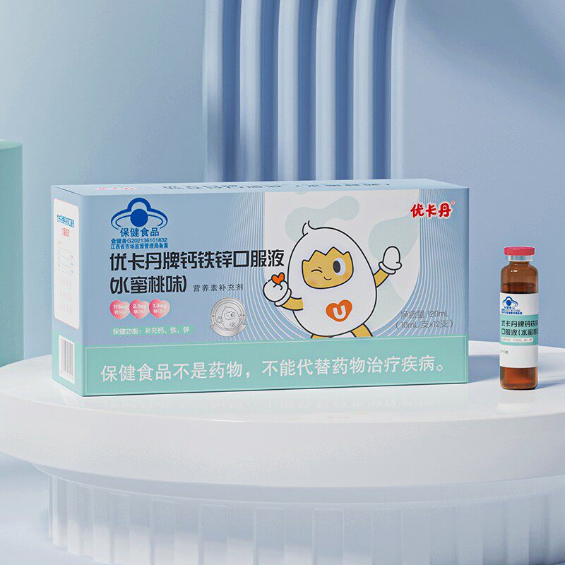 【优卡丹】儿童成长必备钙铁锌口服液!!健康成长吃饭香香,强壮骨骼,补脑提升宝宝的记忆力和视力,改善婴幼儿维生素缺乏危害,蓝帽认证,吃的放心,给宝宝一个更好的起跑线!