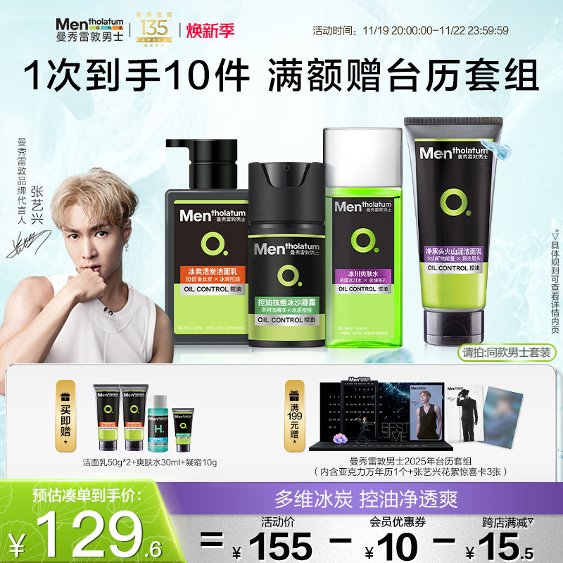 张艺兴同款曼秀雷敦男士水乳套装保湿补水男士专用护肤洗面奶,卖家曼秀雷敦旗舰店,【买即赠129元挂脖卡套+199元25年台历,入会还可以获得洁面乳50g2+爽肤水302+凝霜10*2】叠加优惠每套仅需99元起