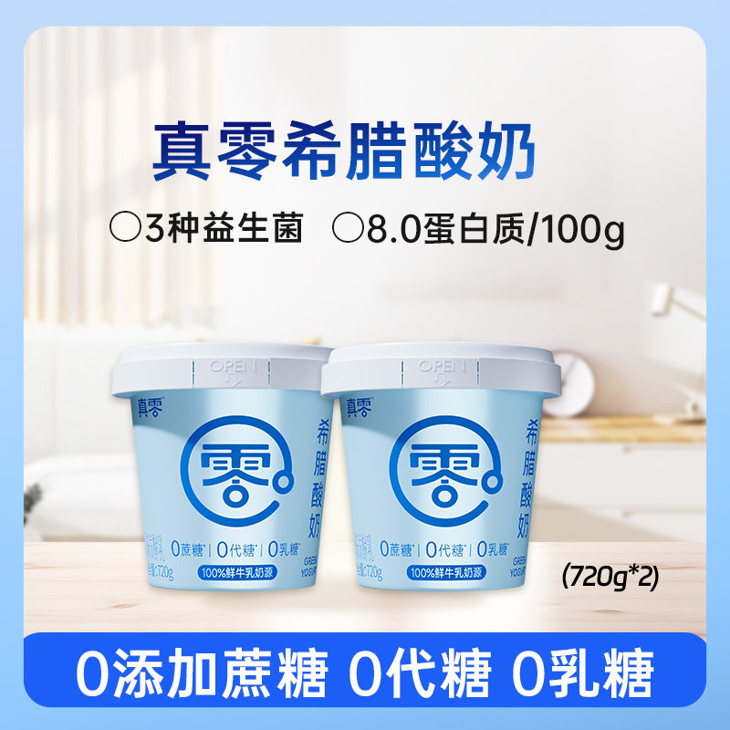 真零希腊酸奶720g,0蔗糖!0代糖!0乳糖!8.0蛋白/100g3种益生菌,高蛋白特浓营养低温酸奶!!