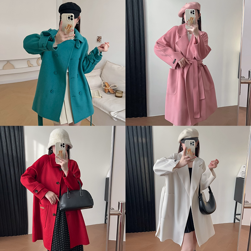 真维斯新款显瘦羊毛双面毛呢大衣