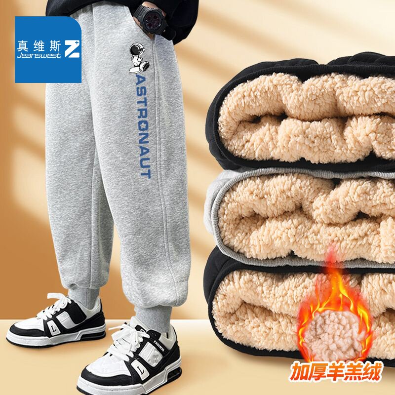真维斯z童装男童羊羔绒裤子儿童冬季加绒保暖裤男孩加厚棉裤秋冬,卖家jeanswestz众成专卖店,温暖整个冬天,羊羔绒儿童加绒卫裤,保暖厚实。锁温黑科技,无畏严寒,为御寒而生,冬日行走的“小暖炉”。羊羔绒内里,蓄热保暖,云朵般的触感,蓬松柔软,穿上很暖和。