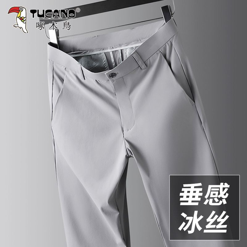 啄木鸟高端牛奶丝西裤高档轻奢冰丝裤中年男士轻薄商务西装裤子男,卖家啄木鸟高端折扣品牌店,