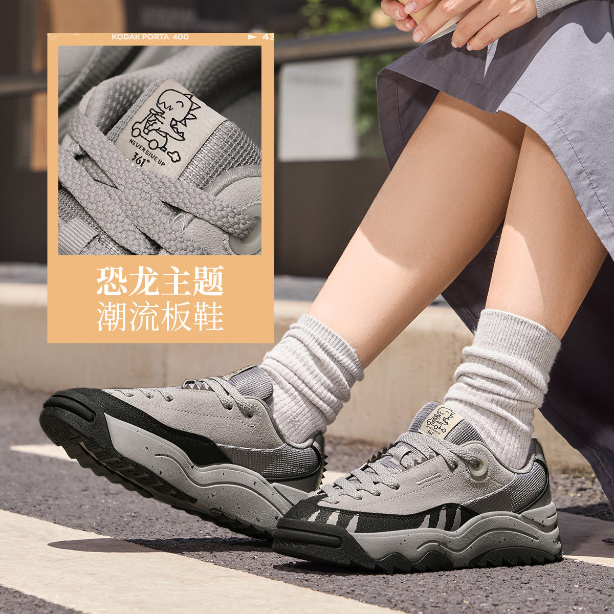 恐龙鞋361女鞋运动鞋2025秋季新款增高厚底板鞋防滑复古休闲鞋女,卖家361度华丰专卖店,【凑200-25+金刚券立减8.9到手70.6】复合材质,质感在线,恐龙主题,潮流板鞋,软弹厚底,舒适耐磨。