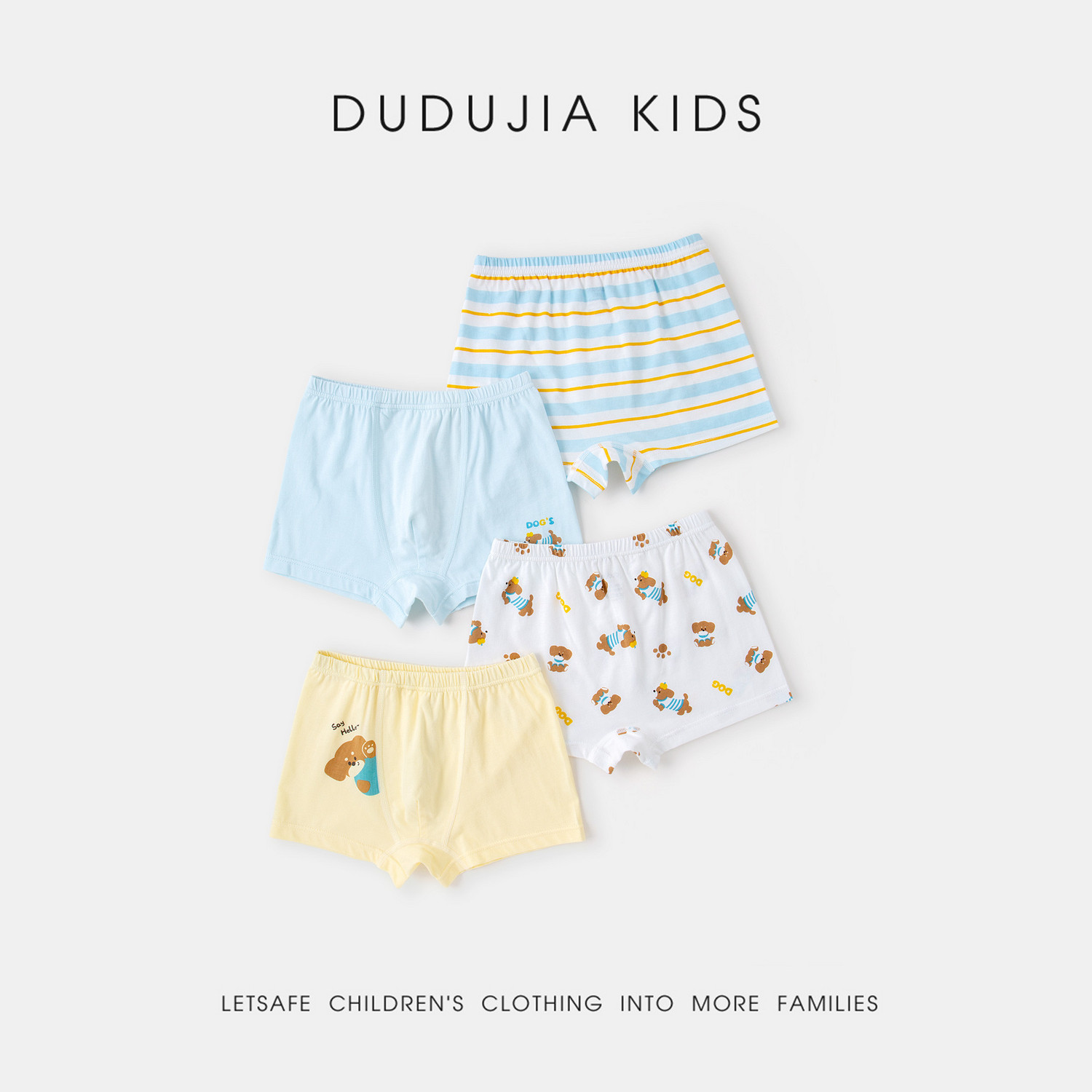 纯棉舒适,宝宝穿得开心。A类品质,健康无害。男童平角裤,时尚又实用。女童四角短裤,活泼可爱。全棉童装,舒适成长好伙伴