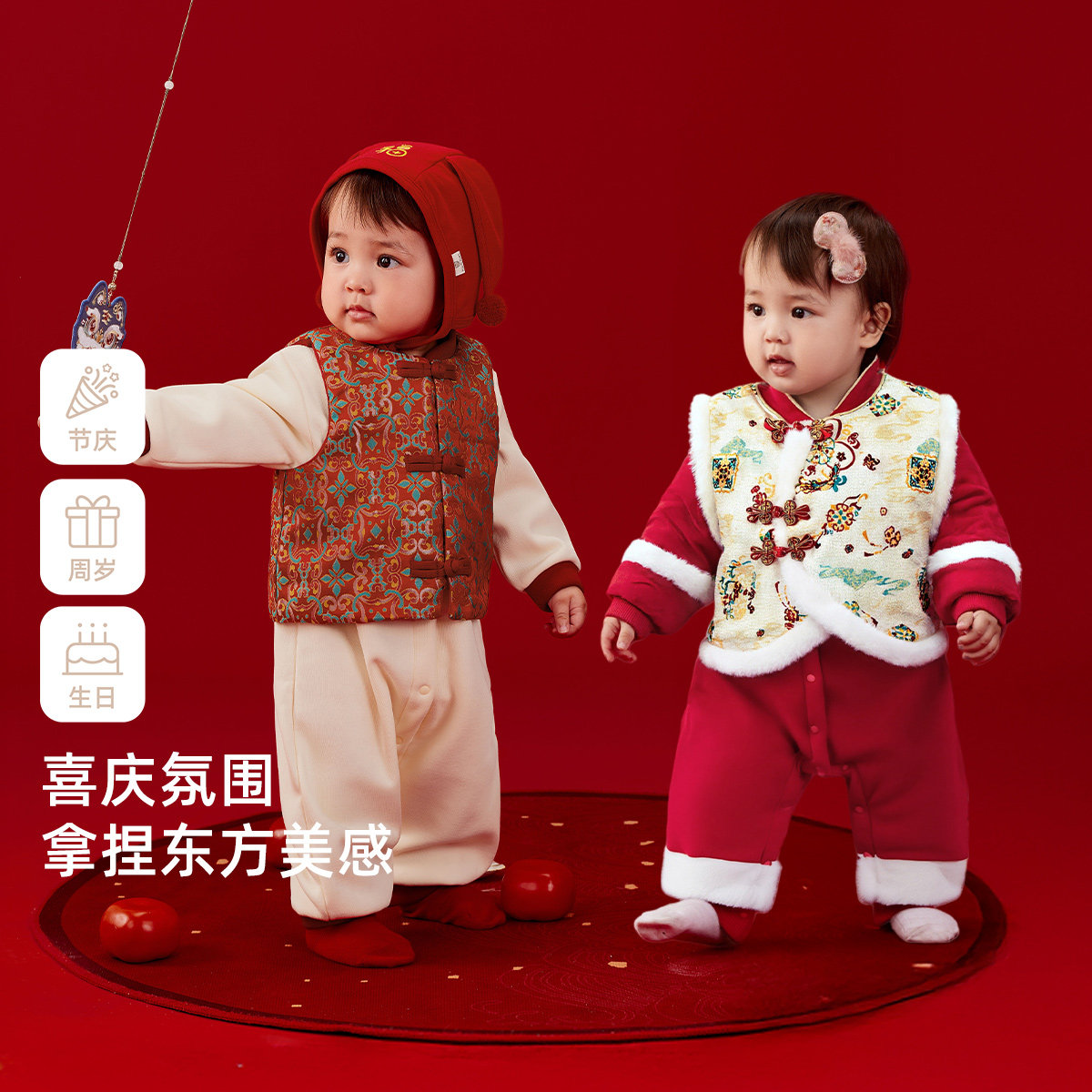 [A类]婴儿喜庆年服秋冬新生儿连体两件套