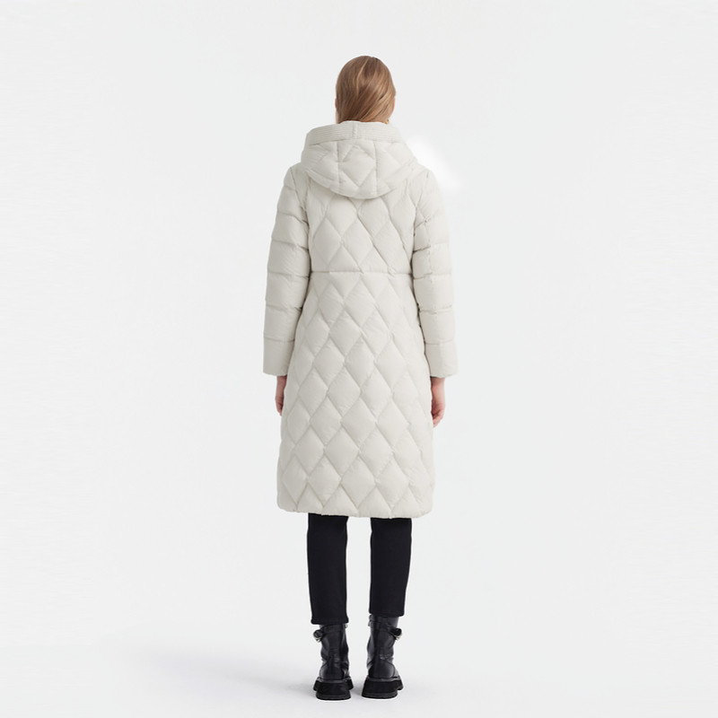 比音勒芬冬季女士收腰长款连帽保暖羽绒服