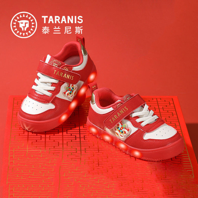 泰兰尼斯闪灯板鞋新年款女宝新年闪灯鞋女童板鞋防滑耐磨儿童板鞋,卖家taranismeta旗舰店,【立减30+实付250-30到手192充值再享约13,会员650-100】泰兰尼斯室春季新年限定版,宽楦鞋头+防滑软底+可控开关+蜂巢鞋垫吸汗减震,进口材质+人体工学剪裁,后跟软包不磨脚,易打理,适合3-6岁宝宝!