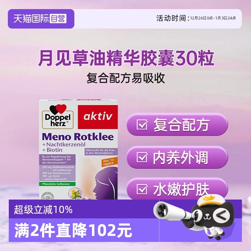 自营德国进口双心月见草油胶囊30粒女性卵巢内分泌保养活力,卖家天猫国际自营全球超级店,【88vip可优惠3.7,淘金币可抵扣3,到手价67.3】德国进口双心月见草油胶囊30粒,超赞~