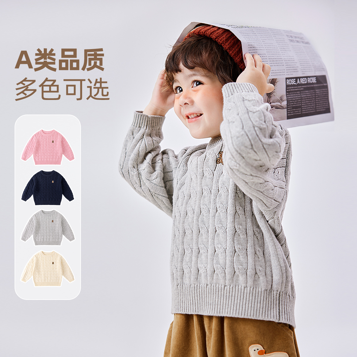 抗起球技术,舒适无负担!儿童针织衫首.选。全棉男童毛衣,保暖又时尚!学院风潮流必备。秋款毛线衣,质感细腻不磨皮。绒密又柔滑,学院气息浓浓!