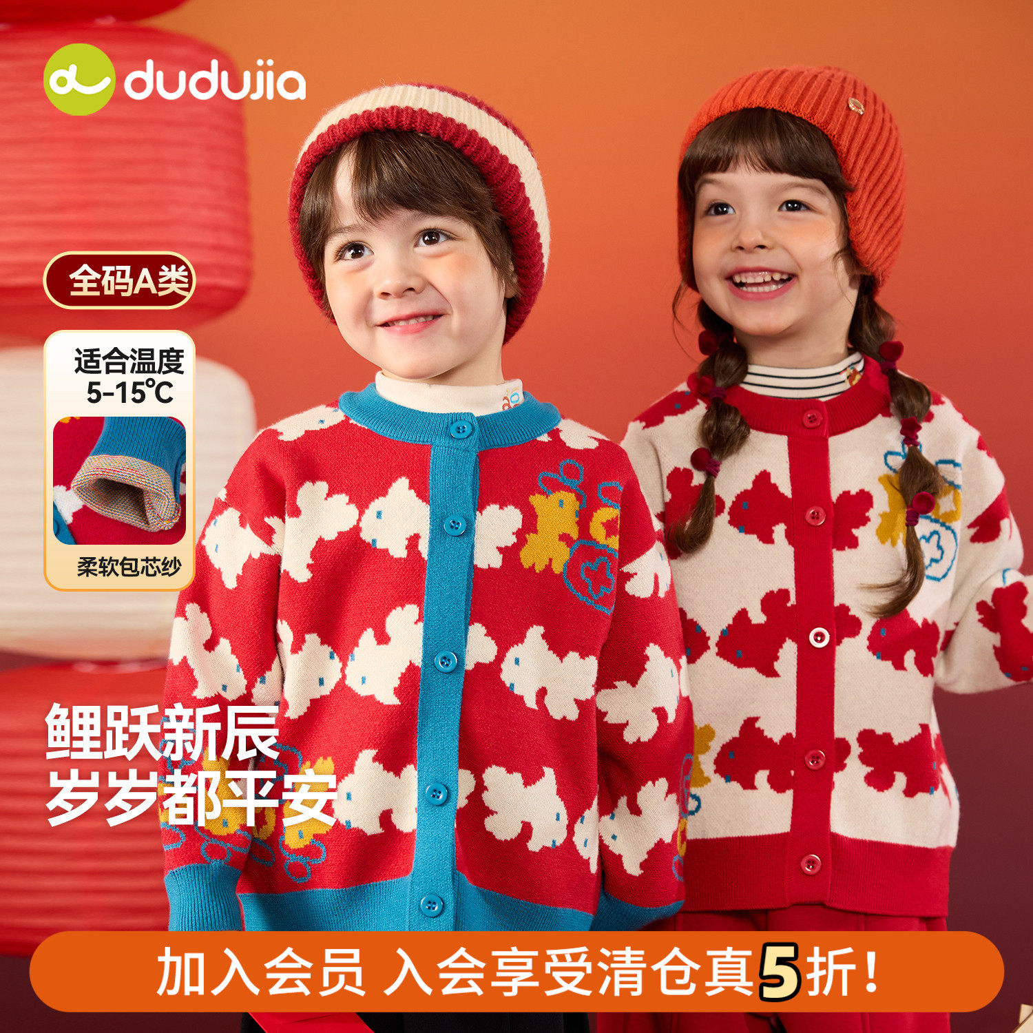 嘟嘟家童装儿童拜年服红色年装毛衣男童女童宝宝国风男宝冬季上衣,卖家嘟嘟家官方旗舰店,【断码清仓,需要入会享受立减到手44.9,叠金币到手42.5~有合适尺码的就是赚到了~】嘟嘟家国风拜年毛衣,红火喜庆+精绣祥云纹,柔软亲肤不扎身,宝宝过年穿出年味儿!加厚羊毛混纺保暖不臃肿,洗后不变形不掉色~把福气穿在身上,新年第1套就选它!
