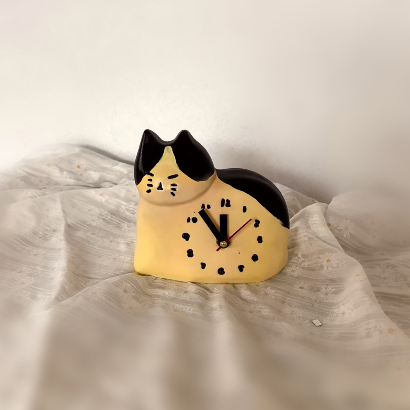 高级感可爱卡通奶牛猫咪座钟表静音奶油风